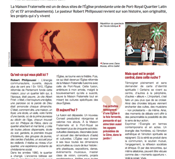 Une église protestante à Paris, ouverte à chacun et chacune, située sur deux lieux, La Maison Fraternelle (5e arr.), le Temple de Port Royal (13e arr.)